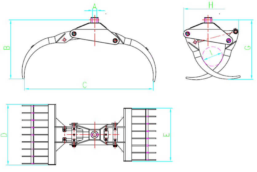 Hö grip A Ø50 I Ø240 B 745 Vikt 113kg C 1565 Arbetstryck ≦20Mpa D 762 Max. tryck 25Mpa E 670 H 1400 G 665